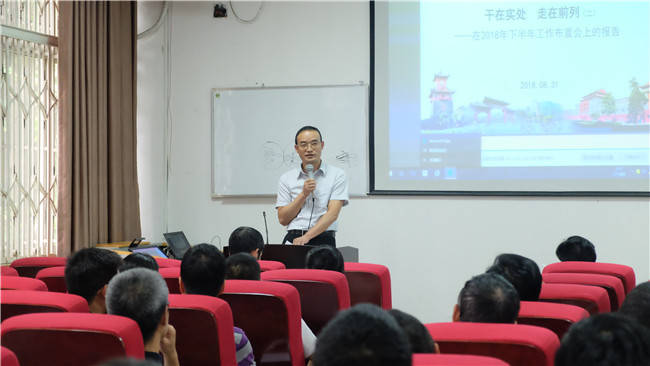 公司党委书记牟德富代表公司党政领导班子布置新学期工作。他指出,公司下半年一要深入学习贯彻习近平新时代中国特色社会主义思想和党的十九大、十九届二、三中全会、两会精神,牢固树立“四个意识”、增强“四个自信”;二要全面加强党建工作,强化支部建设和党风廉政建设,将从严治党不断引向纵深;三要积极响应公司“以院为主体”的校院两级管理体制改革,继续围绕人事、财经、资源等方面抓内涵式发展,重点做好学科文化建设、人才内培外引、公房改革、实验共享平台建设等几项工作。