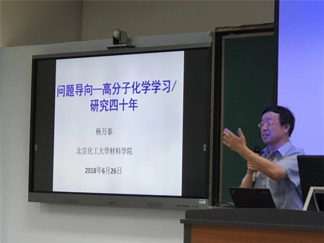 2018年6月26日,应公司傅强经理的邀请,北京化工大学杨万泰院士到公司,为公司师生作了题为“问题导向—高分子化学学习/研究四十年”的学术报告,本次报告由杨伟副经理主持。