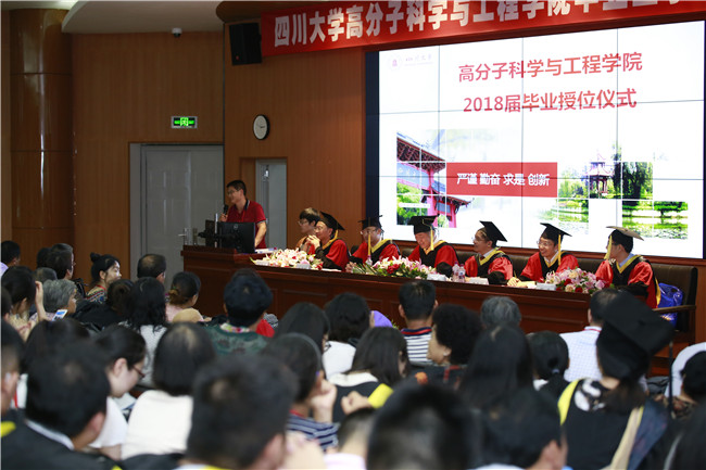 公司教授委员会主任杨鸣波教授、经理傅强教授、公司“双一流”建设与质量评估办公室主任李忠明教授、公司党委书记牟德富教授、副经理杨伟教授、公司教授委员会副主任徐建军教授、高分子材料与工程国家重点实验室副主任夏和生教授、高分子材料系主任刘向阳教授、高分子材料系支部书记陈枫教授、医用高分子材料系主任李建树教授、高分子材料加工工程系主任尹波教授、公司专业实验室主任秦家强教授、医用高分子材料系谭鸿教授、高分子材料系邓华教授、高分子材料加工工程系严正教授出席了授位仪式。公司2018届毕业生、毕业生家长代表和公司辅导员老师参加了授位仪式。授位仪式由公司党委副书记、纪委书记钱祉祺主持。