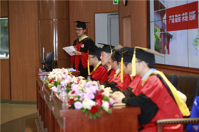 2018届硕士毕业生楚佳同学作为毕业生代表发言。他回顾了个人学习和成长的历程,倾述了对母校和老师的感恩和依依不舍之情,分享了大学阶段的收获与感动,表达了高材生进取的精神、感恩的情怀和激昂的斗志。