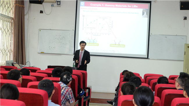 报告中,王宇博士就其在功能化聚合物和纳米复合材料方面所开展的工作进行了介绍,包括设计了类口香糖材料用于在锂离子电池,玉米蛋白用于多功能空气过滤,以及玉米蛋白的过滤作用应用于锂硫电池。王宇博士的报告为聚合物加工与能源储存、空气过滤等功能化应用的结合提供了新的视角和思路,报告结束后,与会师生积极提问,就报告内容以及聚合物纳米复合材料的设计及功能化应用等与王宇博士展开了讨论,现场气氛热烈,参会人员收获颇丰。