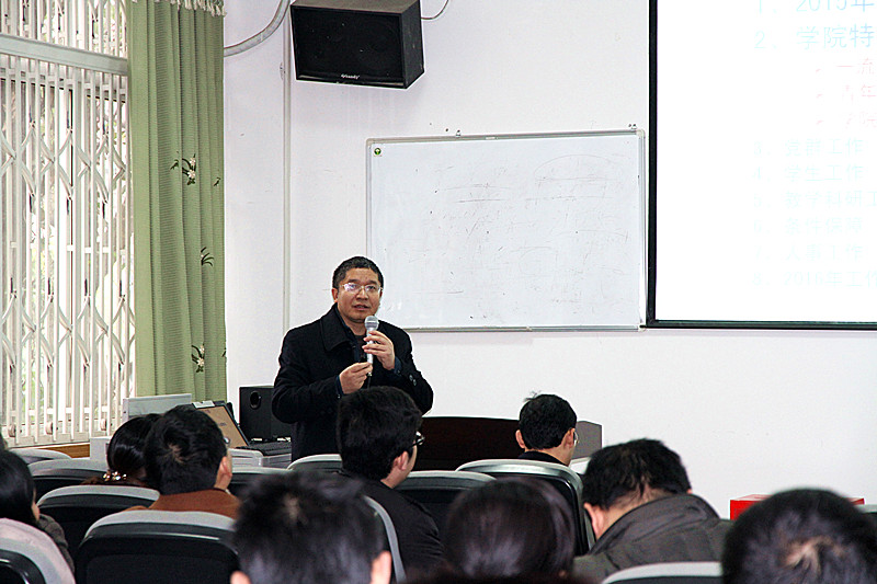 会上,经理傅强教授代表公司领导班子作2015年工作总结。他首先介绍了2015年公司工作任务各项指标的完成情况和存在的问题,接着从党群工作、员工工作、教学科研工作、条件保障、人事工作等方面进行了汇报,并对2016年的工作进行了部署和安排。傅强经理着重介绍了公司2015年的特色和亮点工作,指出公司去年通过举行首届本科生授位典礼、实施“一条龙、全过程”的本科生导师制等创新举措推动了本科教学建设与改革;在青年人才队伍建设方面,公司通过全方位、分层次培养人才和青年教师工程化培养计划使公司青年人才迅速成长。傅强经理说,本科教学是根本、青年人才是关键、科学研究是核心、考核评价是动力,希望全院教职工在新的一年中志存高远、追求卓越,为建设国内一流、国际知名的学科努力拼搏。
