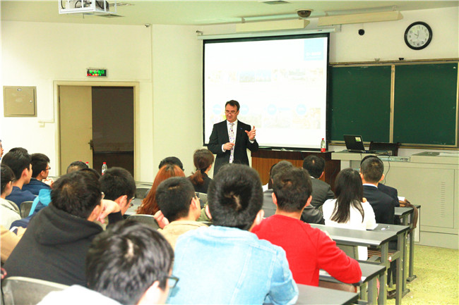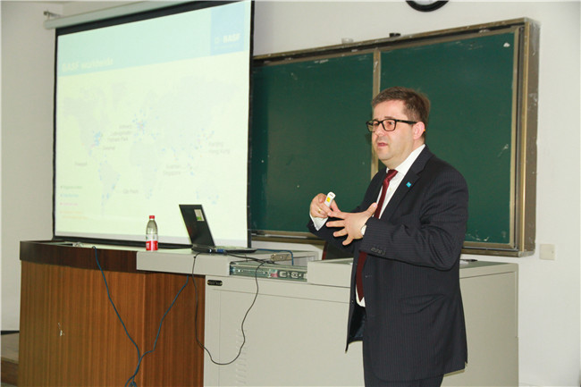 Dr. Lauke对巴斯夫的起源以及初期的发展做了详细介绍。他作为亚太区的代表,见证了中国在近年来取得的长足进步,巴斯夫作为全球化工企业龙头,在上海建立了亚太区的研究中心。他强调在未来几年,巴斯夫会在亚太区更多的地方建立的研究中心,与亚太区顶尖高校进行紧密的合作,并指出这种合作是一种双边互赢、互惠互利的长期合作关系。副总裁Dr. Winterling作为研发人员出身,以自己的亲身经历阐述了科研创新对于企业的重要性。他以门捷列夫发现的元素周期规律为出发点,说明了创新不仅仅是新事物的创造,也是对现有事物的归纳总结,能为新事物的发现和发展提供简洁有效的研究方法。他鼓励在校员工要时刻保持对所学专业的热情态度,勇于打破常规,提出自己的见解,具备创新头脑和思想,才能在自己的领域做出成就。最后巴斯夫负责企业-高校项目合作的高级经理Dr. Garnier重点结合巴斯夫在亚太区为促进企业-高校深度交流合作而做出的努力进行了介绍,他指出巴斯夫目前在亚太区依托公司建立了先进材料开放研究网络平台,鼓励高校博士以及博后人员加入这个平台,在平台的支持和资助下把自己的所学充分发挥出来,从而加强企业-高校交流合作关系,也能帮助即将毕业的员工提前了解企业研究和高校研究之间的异同,对自己的未来做出长远的规划。