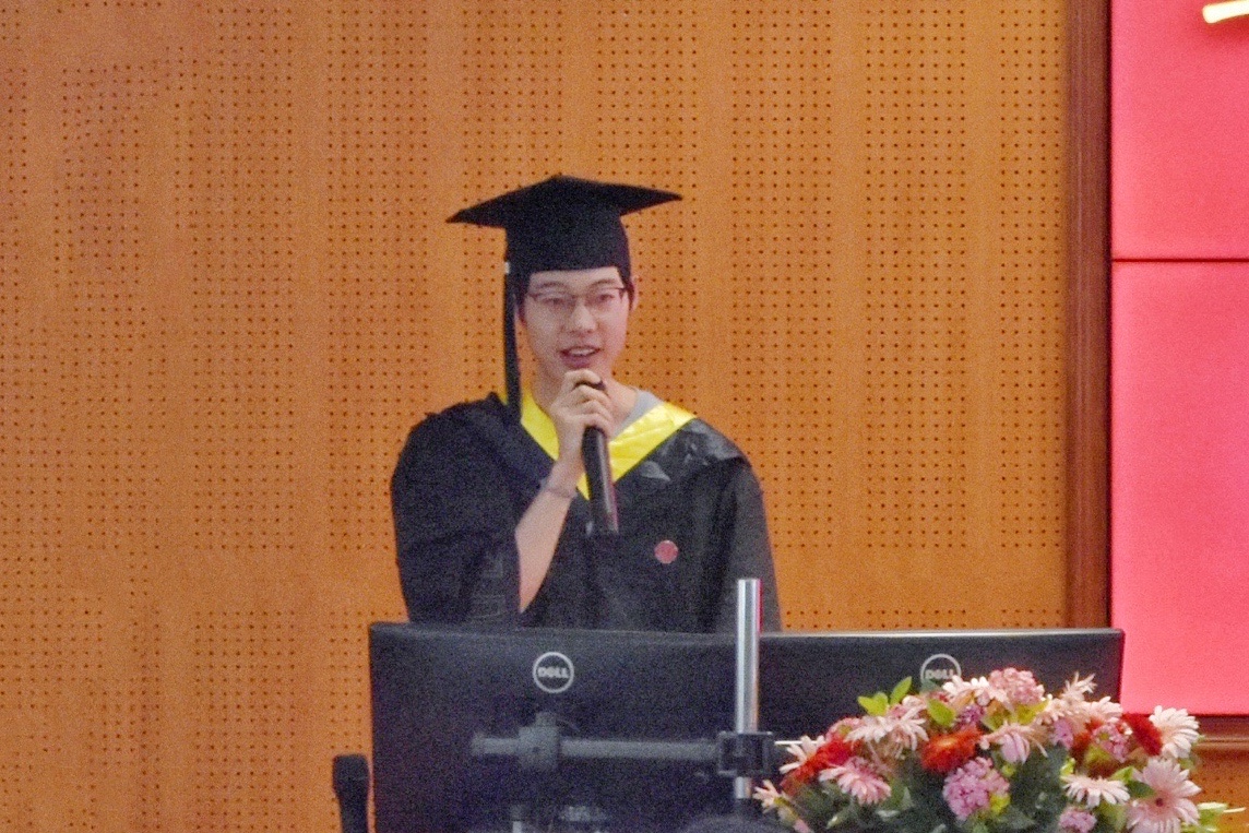 四川省优秀毕业生、2022届毕业生代表陈鹏同学代表全体毕业生发言。他细数老员工活中的点点滴滴,回顾了四年来的成长与收获,表达了对公司、同窗的感激之情。他表示将在新的征途,志存高远,砥砺前行,不负川大、公司的培养。