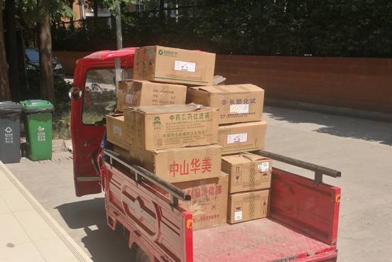 用完药品试剂摆放在门口 |