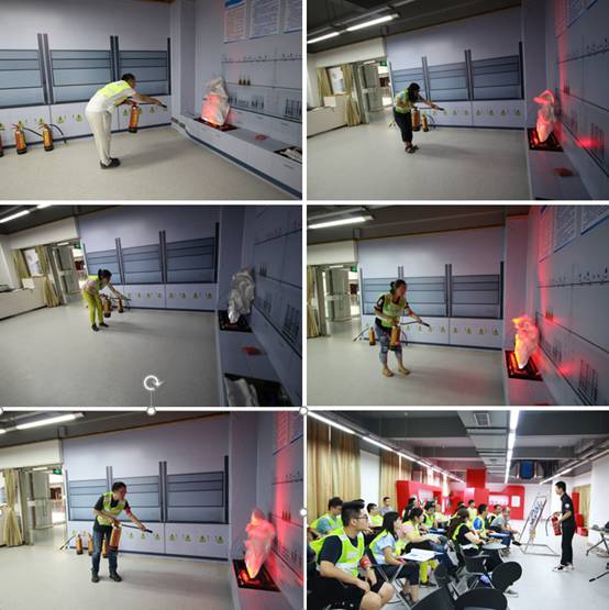 首先,许成哲老师为大家讲解火场应急处置知识,并为大家播放了一个火灾从发生到被扑灭的过程的视频,短短三分钟不到,一间完好的起居室就被烧成了灰烬,这使大家唏嘘不已。
