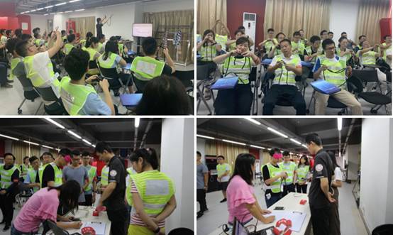 本次活动共分为四个板块——火场应急处置知识介绍、模拟火场逃生、模拟干粉灭火器灭火训练和应急绳结技术。