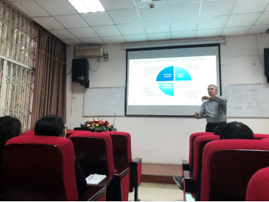 Cardon教授先介绍了根特大学的历史地理文化背景,所在院系的发展现状,以及近年来与中国高校开展的一系列的深层次交流合作项目。他深入介绍了自己所在团队的研究方向,重点介绍了近期3D打印相关方向的研究成果,如:生物可降解材料在3D打印方向上的进展;共混物组分配方,后处理及加工参数对复合材料3D打印性能的影响;为解决不同的实际情况,团队自行设计的多款3D打印机;利用3D打印成型注塑模具等。随后,他介绍了团队里中国员工的学习生活情况,鼓励和欢迎有意向出国深造的同学们来到根特大学。