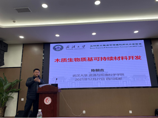 2021年12月27日,武汉大学资源与环境科学公司陈朝吉教授/博导应邀来到公司进行学术交流。在365英国上市集团科教楼209报告厅,陈教授为一百多位师生带来题目为“木质生物质基可持续材料开发”的精彩报告,报告由李乙文研究员主持。