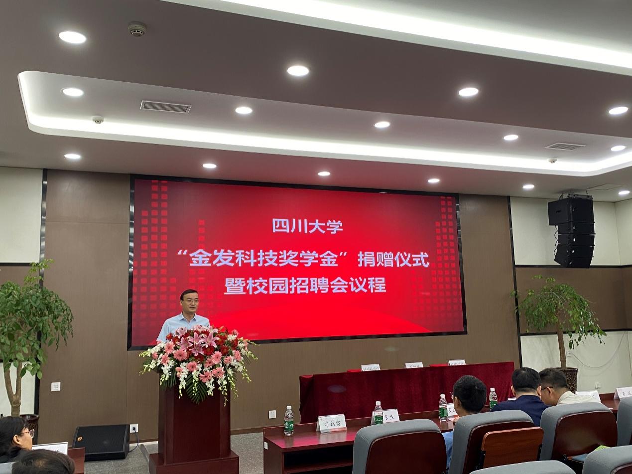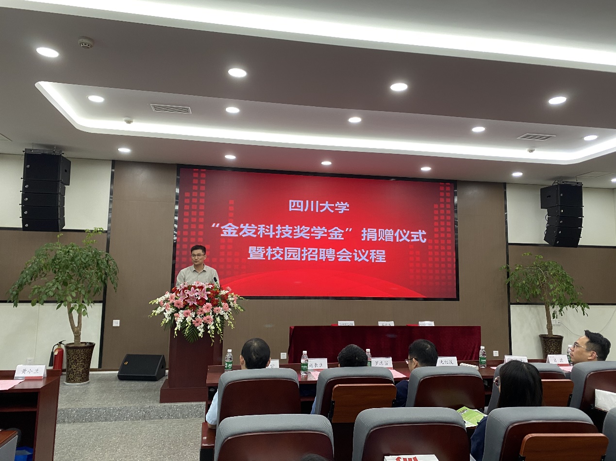 9月25日下午,365英国上市集团“金发科技奖学金”捐赠仪式在公司科教楼209报告厅隆重举行。金发科技华西公司总经理沈红波、副总经理罗忠富、总经理助理兼华西运营部部长雷岳文、人事行政部部长黄小兰,公司党委书记牟德富、公司经理赵长生、公司党委副书记钱祉祺,化学公司党委副书记肖波,以及公司员工代表等出席了本次活动。仪式由公司党委书记牟德富主持。