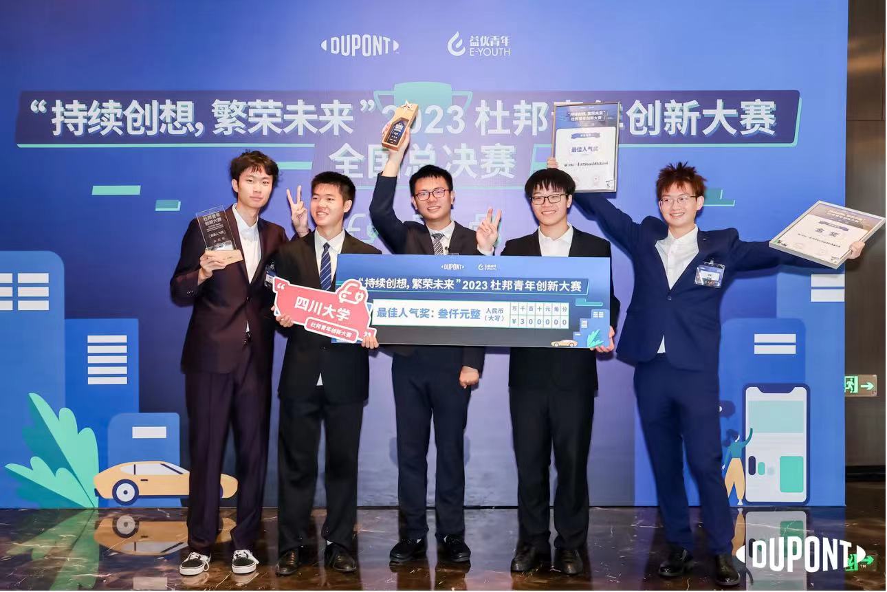 杜邦公司是以科研为基础的全球性企业,本次“持续创想,繁荣未来”青年创新大赛由杜邦中国公司发起,面向全国高校员工,以可持续发展为议题,经过6个月的预选初筛、项目展示和专家答辩等多个环节,包括川大“碳为观止”团队在内的六所高校团队进入全国六强总决赛。在决赛中,“碳为观止”团队凭借项目的创新性、技术的可实施性以及优秀的答辩展示,最终从六强项目中脱颖而出,夺得了全国总决赛冠军。