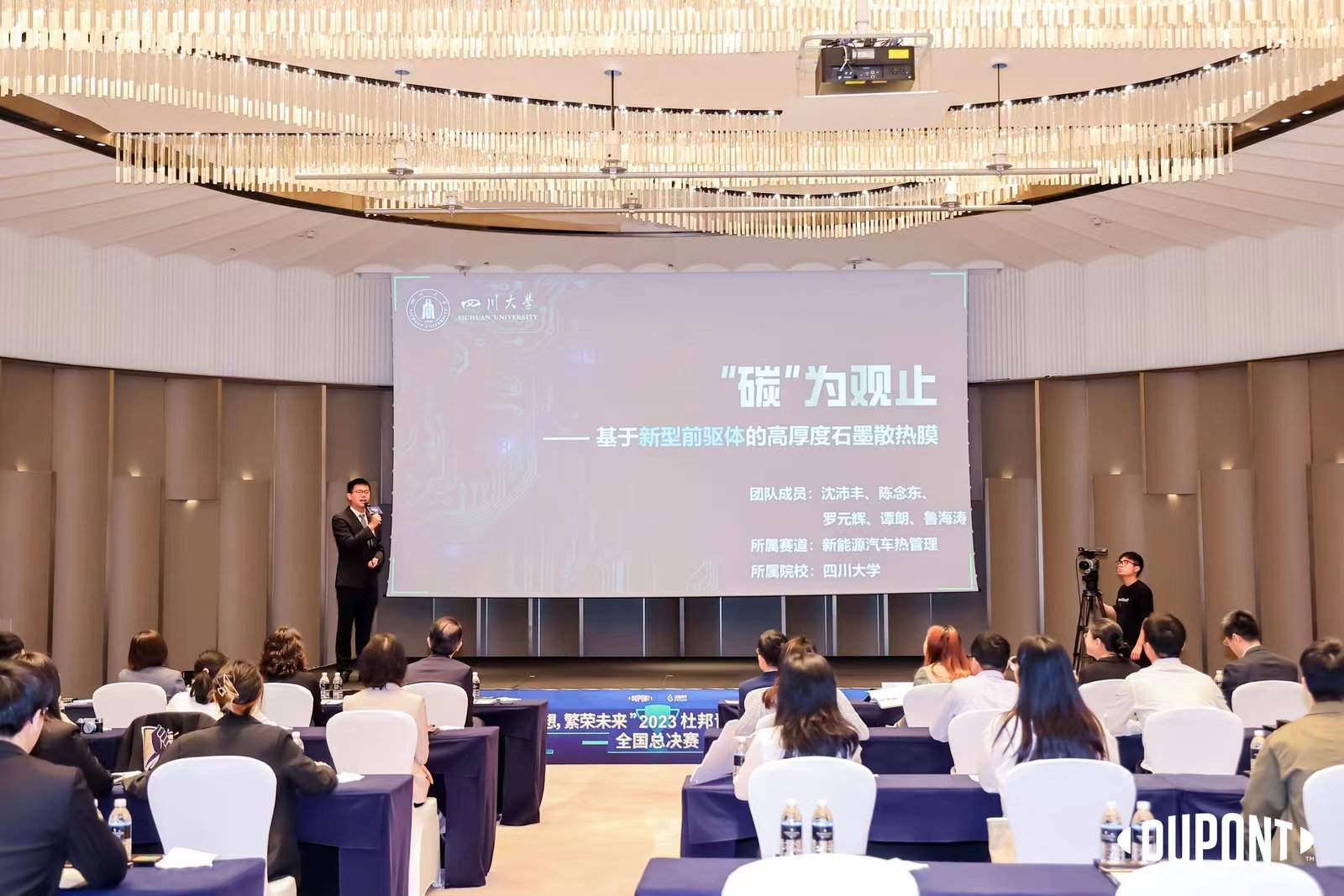 2023年5月4日-6日,由杜邦中国公司发起的“持续创想,繁荣未来”杜邦青年创新大赛决赛在上海举行。由公司沈沛丰、陈念东、谭朗、鲁海涛、罗元辉五位同学组成的“碳为观止-基于新型前驱体的高厚度石墨散热膜”项目团队获得“杜邦青年创新大赛全国金奖(第一名)”和“最佳人气奖”。