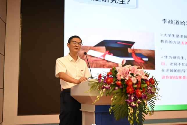 经理赵长生以“担时代重任,树高材新人”为题讲授 “开学第一课”,他寄语新生“奋斗所到处,青春恰自来”,鼓励同学们加入到建设世界一流高分子中心的伟大事业中来。肖明特聘研究员,本硕博贯通式培养博士研究生陈鹏,黄铄分别代表教师、学长和新生同学发言。