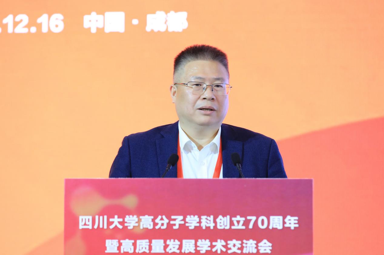 曹镛院士作嘉宾代表致辞。他分享了与川大高分子的珍贵友谊。他表示,经过70年发展,川大高分子学科已成为国内一流、国际知名的高分子材料科学与工程领域规模最大的科研和教学基地之一,为我国高分子学科教育、科学进步和社会发展作出了积极贡献。他希望,川大高分子学科传承老一辈科学家精神,坚定不移地走高水平内涵式发展道路,永攀科技高峰,为我国高分子材料科学与工业发展作出更大贡献。