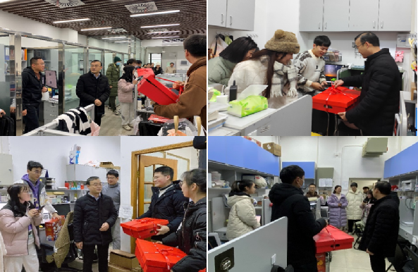 走访中,公司领导还为寒假留校员工送上了慰问品和新春祝福。师生代表纷纷表示一定落实公司各项规定,发扬顽强拼搏的精神,在各自岗位上认真学习工作,力争来年取得更加优异的科研成果。