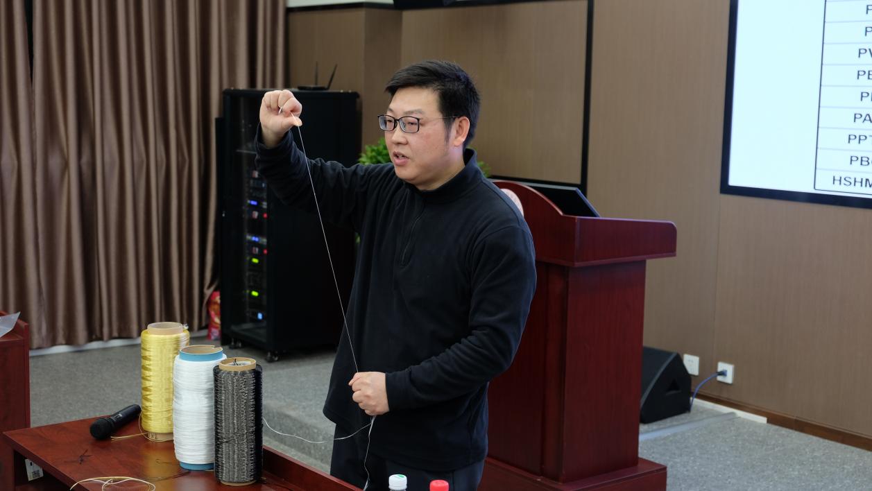 公司姜猛进教授给同学们作了题为“高技术纤维的发展与应用”的科普讲座,重点介绍我国化学纤维的发展现状、高技术纤维高性能化和超细化发展方向等。同时,姜老师给同学们展示了三种不同的化学纤维,让同学们切实感受不同材料的性能,拓展了同学们的科学视野。