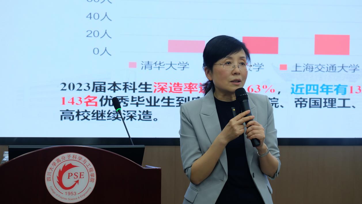 公司副经理冉蓉介绍了公司人才培养情况、深厚学术底蕴和在高分子学科领域展现出的卓越科研实力与丰硕教学成果,并表示欢迎同学们以后报考川大高分子。