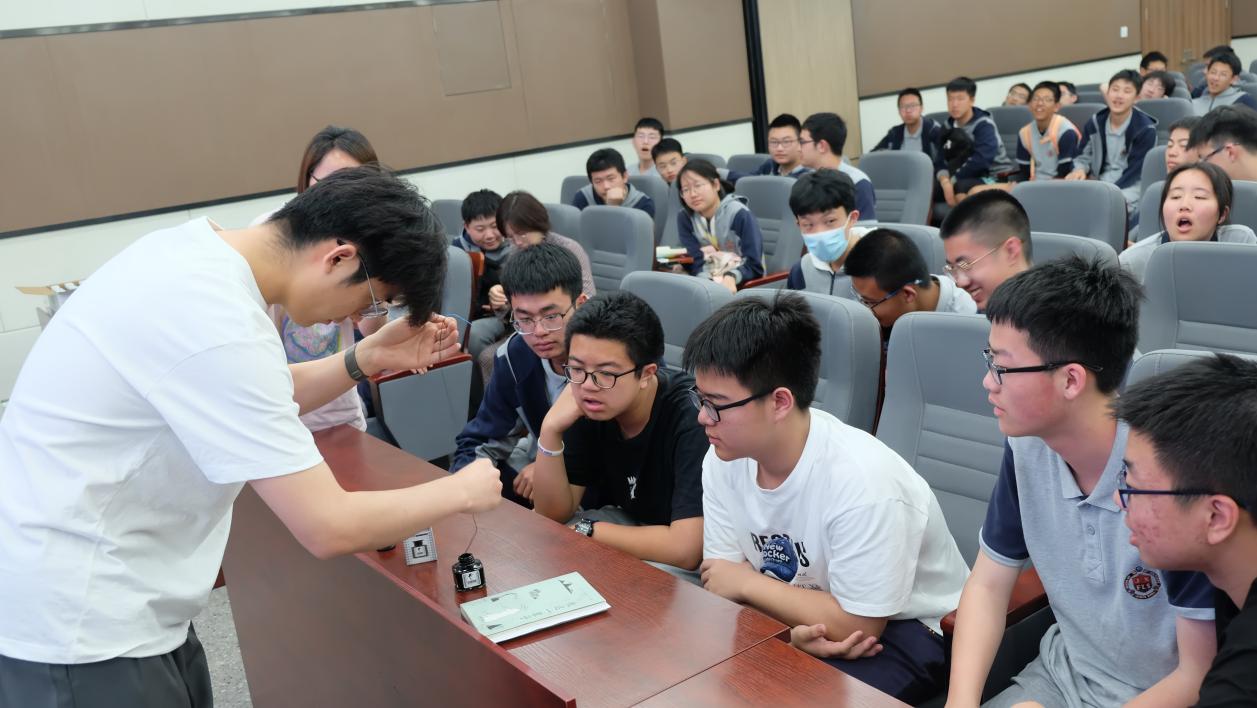 公司王宇研究员为同学们作了题为“浅品高分子”的科普讲座,重点介绍了高分子与地球生命起源和高分子与人类文明进步两个方面。同时,他为同学们展示了“链条喷泉”实验和用珠链在纸上通过摩擦画出不同图案的构象艺术。这一构象艺术的展示让同学们叹为观止,深切体会到了高分子科学的无穷魅力,拓展了科学视野。