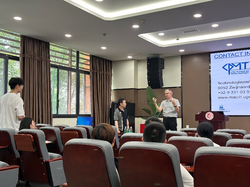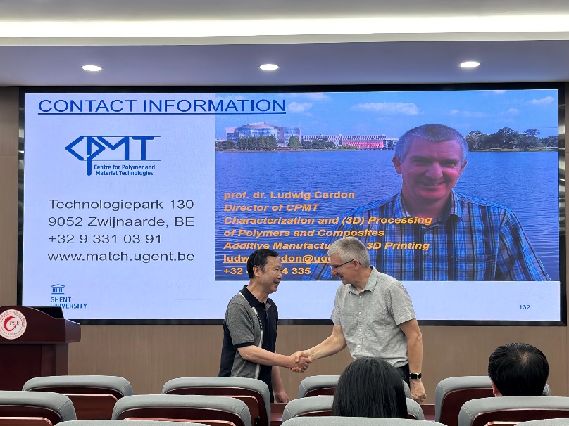 Cardon教授先介绍了根特大学的历史地理文化背景,所在院系的发展现状,以及近年来与中国高校开展的一系列的深层次交流合作项目。随后深入介绍了自己负责的聚合物材料技术中心(CPMT)研究团队的研究进展,重点介绍了聚合物及复合材料的先进表征和加工相关方向的研究成果,如可持续生物材料、聚合物的再加工和回收、混合注塑模具、热和电气应用的聚合物复合材料等。此外,还介绍了增材制造(即3D打印)领域的研究概况,如3D打印应用领域的新型聚合物及复合材料的开发,3D打印过程的仿真模拟分析和创新建模方法研究,以及3D打印相关设备与技术的创新等。