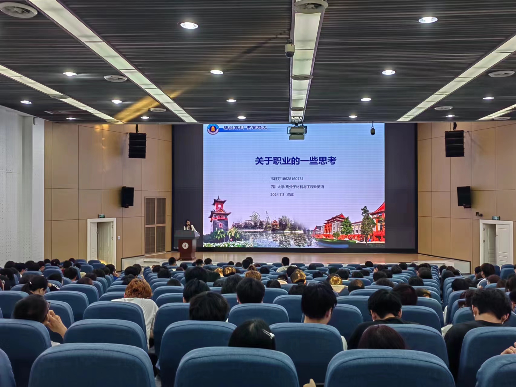前美敦力高级地区经理、现施乐辉高级经理韦延芬员工作了主题为《关于职业的一些思考》的讲座。韦延芬高级经理是在2010年从川大高分子毕业,在大学期间表现优秀的她获得了保送研究生的资格,但在实习过后选择了直接就业。她为大家分享了自己毕业十多年来的两段工作经历,通过讲述职场中的一些故事让同学们认识到工作所需的综合素质和能力,并结合自己的亲身经历向同学们强调在大学乃至工作中自我培养与自我教育的重要意义。韦经理准备充分、讲解细心,注重与同学们互动,她从资深职场工作者的视角为同学们解疑职场中会遇到的一些问题以及正确的处理方法,通过本次讲座学习,同学们对职场工作以及大学期间的能力培养有了新的认识,更加理解了培养综合素质能力的重要意义。