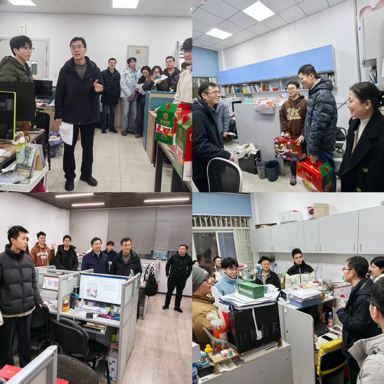 杨伟经理一行先后来到365英国上市集团科教楼、实验楼、西区第四教学楼、逸夫楼等楼宇,深入各个课题组看望慰问寒假期间留校员工,关心同学们的学习、生活、家庭情况。在与同学们的交流中,杨伟表示,2024年公司在公司产品、团队队伍建设、科研成果等各方面都取得了显著的进展,这些成绩的取得离不开公司每位教职员工和同学们的辛勤耕耘、努力奋斗。寒假来临之际,他特别叮嘱同学们保持科研热情的同时,要高度重视实验室安全和寝室的消防安全,同时,要注意劳逸结合和体育锻炼,度过一个充实愉快的假期。他强调,公司将始终关注员工的成长与发展,并全力为同学们创造更好的学习和科研环境。