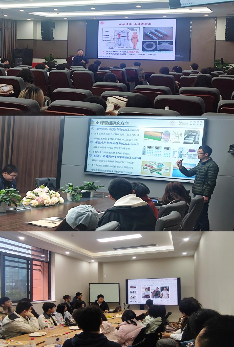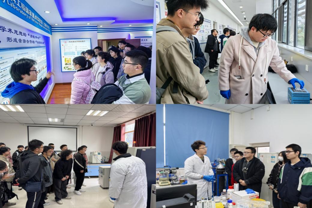 上午9时30分,全体员工在科教楼前集合合影后,分为十二个小组,在研究生志愿者的带领下,依次参观先进高分子材料全国重点实验室、科教楼、第四教学楼及工程训练中心等实验场所。各实验室老师及研究生学长学姐为同学们详细讲解了高分子材料的前沿研究方向、实验设备的功能与操作规范,并展示了近年来公司的标志性科研成果。面对先进的仪器设备和生动的实验案例,同学们表现出浓厚兴趣,纷纷结合课程规划与未来科研方向提出问题,志愿者逐一解答,现场互动氛围热烈。下午的自由参观环节中,员工根据个人兴趣选择课题组深入交流,近距离观摩实验流程。