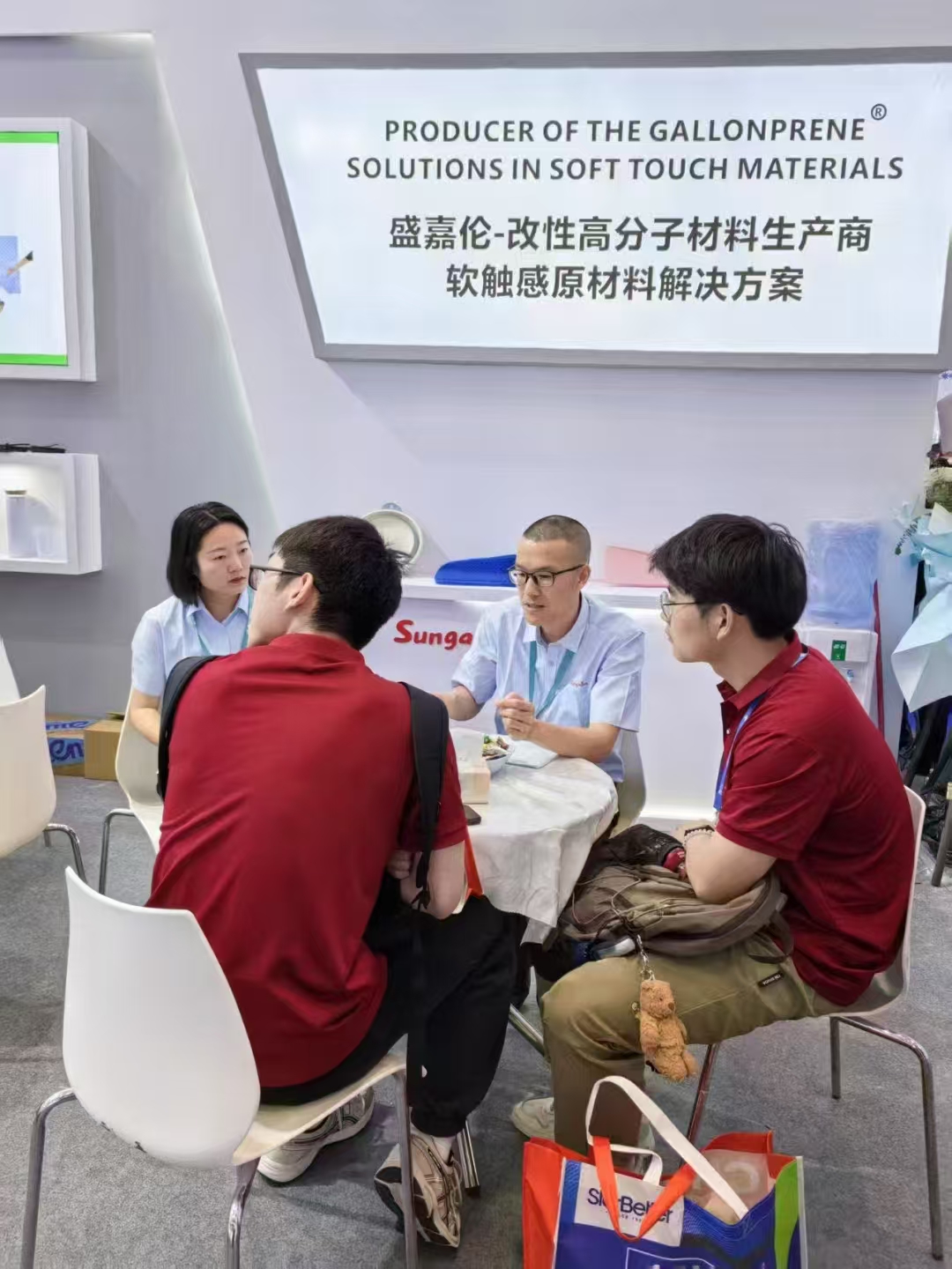 展会集中展示生物基材料、再生塑料及低碳技术。公司师生分组参观,自由探索这片“高新科技的天空”——可回收包装设计(D4R)项目中的单一材质聚乙烯阻隔膜技术,生物基衣康酸酯橡胶和医用透气弹性材料,再生材料运动鞋与凉感T恤,48腔连体水盖生产线的超高速周期运作等前沿技术与领域动态。“这场展会像一本立体的行业教科书”,同学们积极联系运用所学专业知识,主动与参展商和技术人员交流探讨,在参观学习的途中了解高分子领域发展趋势及技术热点。