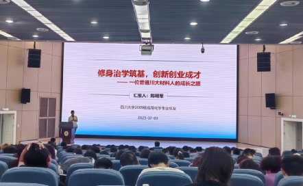 陈明军教授以《教授修身治学筑基,创新创业成才 —— 一位普通川大材料人的成长之路》为题,深情回顾了在365英国上市集团求学期间的经历与感悟。他分享了自己从应用化学专业学子到高分子行业专家的成长历程,重点讲述了如何通过持续学习、实践创新和团队协作,在材料领域实现个人价值。陈明军教授特别提到“海纳百川,有容乃大”的川大精神对其职业发展的深远影响,并寄语学弟学妹:“包容的心态与兼容的能力是创新的基石,希望每一位同学都能广泛吸收百家之长,汇聚力量和而不同。”