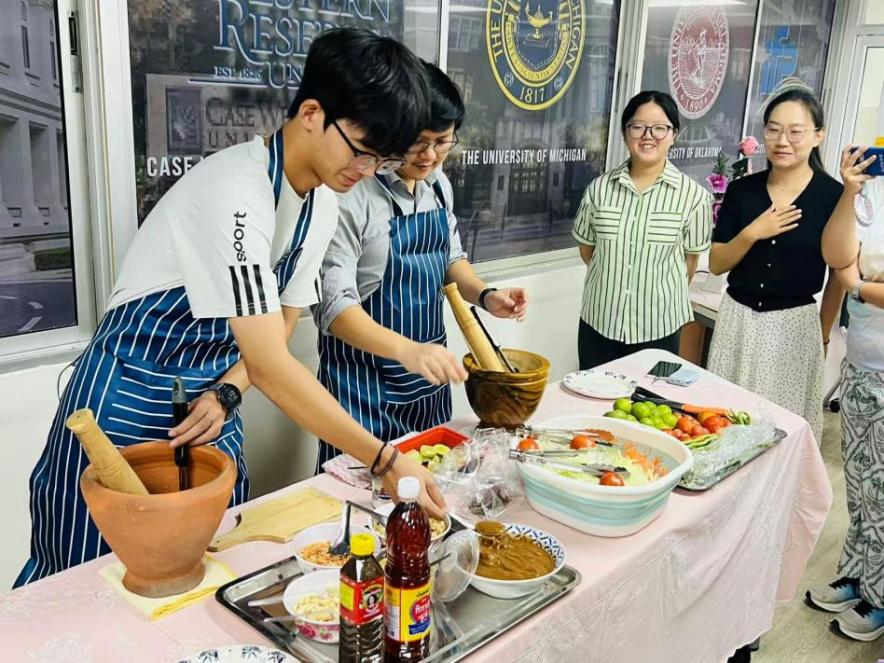 在开展学术课堂的同时,本次项目也为同学们开启了一场深度的泰国文化沉浸之旅,通过泰餐烹饪、泰拳、泰语等独具泰国特色的课程,让大家从美食、运动、语言等多个维度,感受到了异国的独特文化和魅力。