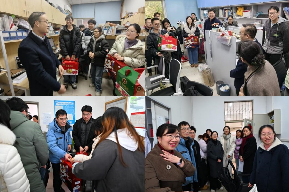 1月26日下午,公司党委书记牟德富、经理杨伟、党委副书记李艳梅,员工工作组辅导员、研究生会骨干一行十余人走访慰问了2026年寒假留校员工并送上马年新春祝福与暖心关怀。