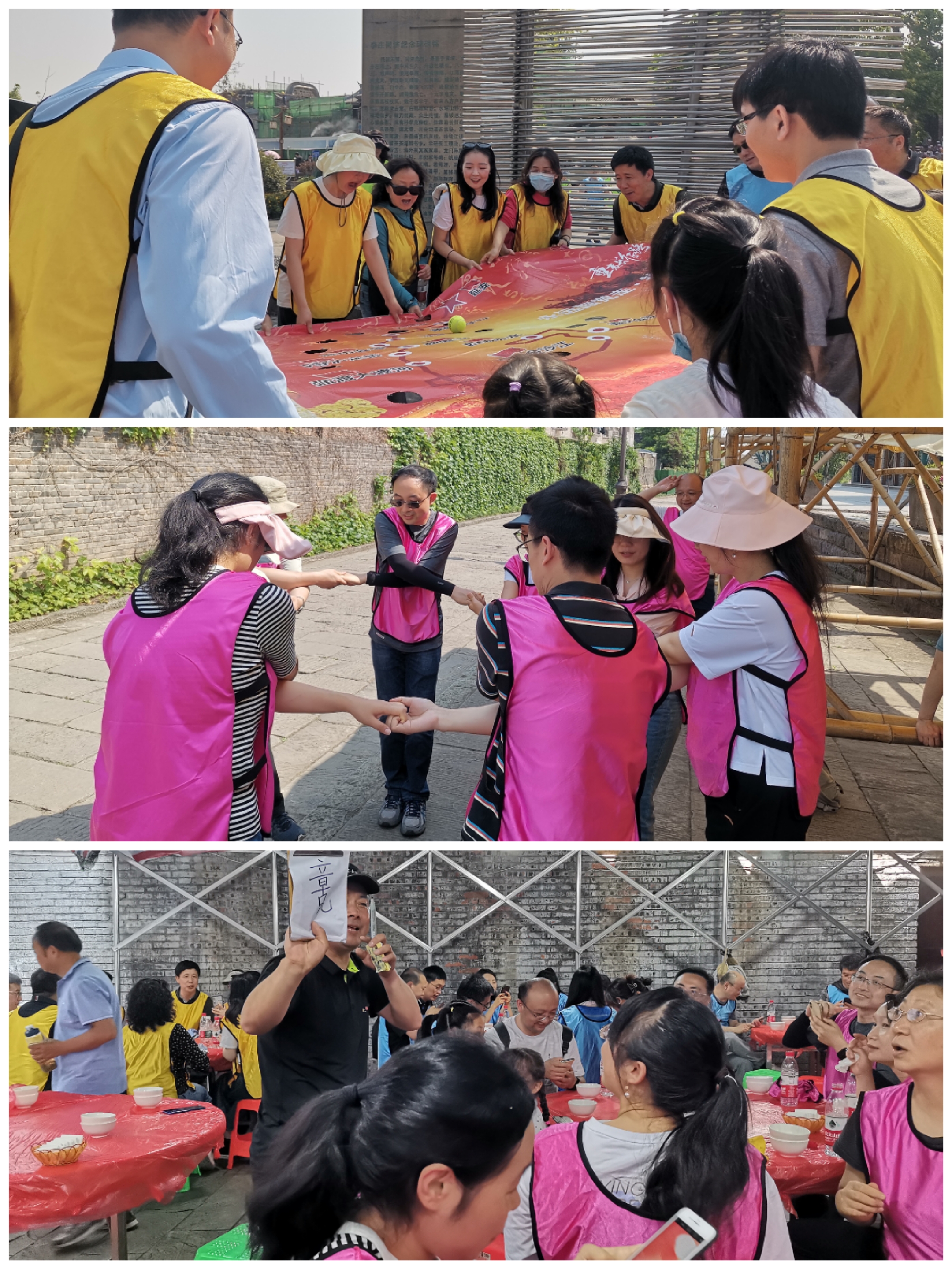 从“同院相见不相识”到“笑问尔之姓名来”,在这个阳光灿烂的日子里,本次团建活动以经典游戏“爱的抱抱”开场。在游戏中,大家紧紧搂住周边好友,笑作一团,拍拍背揉揉肩,为彼此放松身心。活动人员随机分成四组,大家换上青春洋溢的队服,集思广益后产生了拥有特色创意队名和响亮口号的四个小团队。