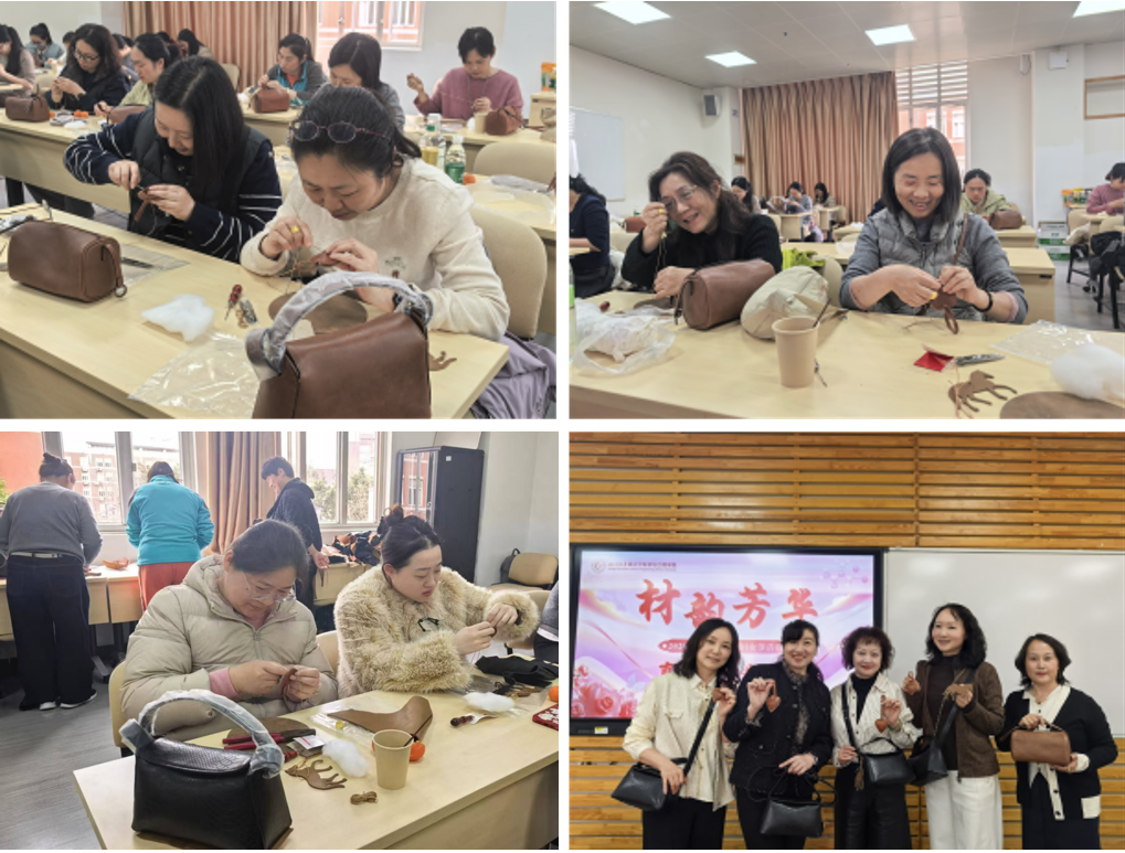每一块皮革的纹理都是独特的,正如每位女性的创造力不可复制。在手作环节,指导老师从选材、裁剪到缝制工艺展开讲解,并示范了应该如何进行真皮包及其配件的制作。实践中,教职工们化身“巧手匠人”,展开创意设计,收获了风格各异的真皮包和配件,每一件都凝聚着智慧与巧思。