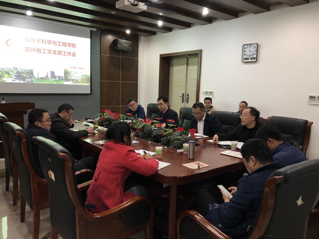 党支部书记汇报了巡查整改和基层党建“二十五问”整改的相关进展情况,就近期党支部建设存在的难点、问题进行了交流和讨论,并就相关工作提出了良好的意见建议。支部汇报后,牟德富同志就教工党支部牢牢把握立德树人根本任务,全面对标“五个到位”、“七个有力”,严格落实《中国共产党支部工作条例(试行)》和集团《教职工党支部工作实施办法》提出了几点要求:一是强调支部书记作为支部工作第一责任人是非常重要的,支部书记要对支部的三会一课”、主题党日、党员评议等重要工作亲自把关,严格规范相关过程和细节;二是支部书记要发挥好党支部中的“领头雁”作用,推动党建工作与教学科研同规划、同落实,互促互进,为 “双一流”建设提供坚强组织保障;三是目前川大高分子学科发展面临着较大的竞争和挑战,教工党支部要积极参与推动学科融合、学科交叉、资源共享、优势互补, “同心、同向、同行”努力打造一流高分子学科;四是切实把疫情防控工作作为当前的重大政治任务,强化责任担当,扎实做好疫情防控工作。