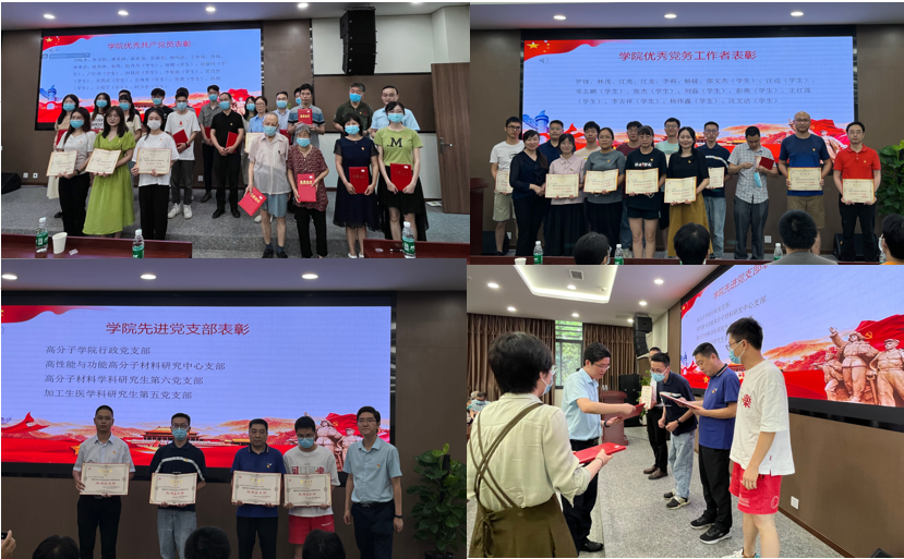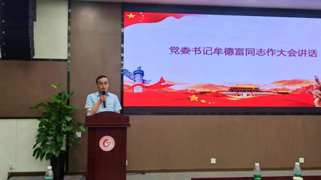 大会在庄严的国歌声中拉开序幕。公司党委书记牟德富同志作大会发言,他代表公司党委向在教学、科研、管理等战线辛勤工作的全体党员,向曾为团队建设发展作出贡献的离退休党员,向受到表彰的先进集体和个人致以诚挚的问候并表示热烈的祝贺。他回顾了中国共产党百年奋斗的历史成就,指出一代又一代川大高分子人在中国共产党的坚强领导下,始终坚持党对工作的全面领导,各项事业再攀新高。他表示,在第二个百年奋斗征程上,全院师生要总结历史经验、把握历史规律,继续增强开拓前进的勇气,持续推进党的建设,以建成世界一流高分子学科作为我们凝聚人心、鼓舞斗志的强大精神力量。