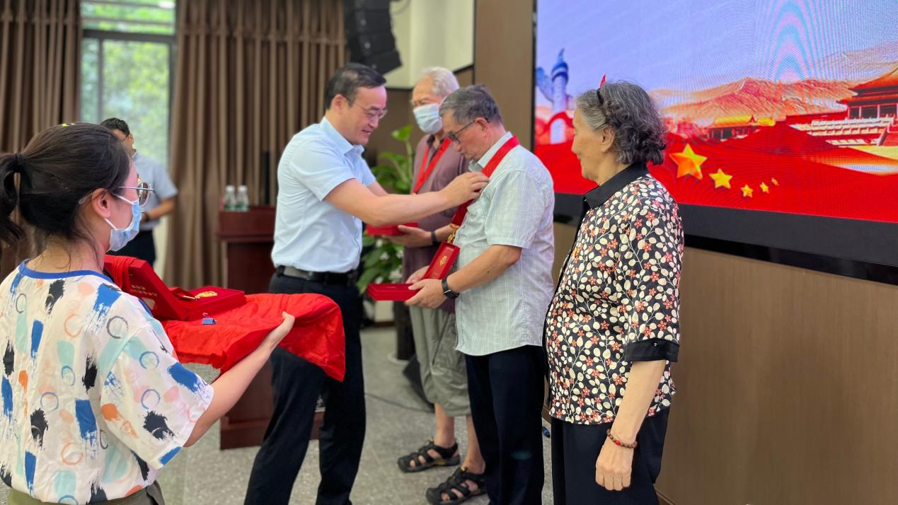 公司党委书记牟德富同志为党龄50年老党员颁发奖章