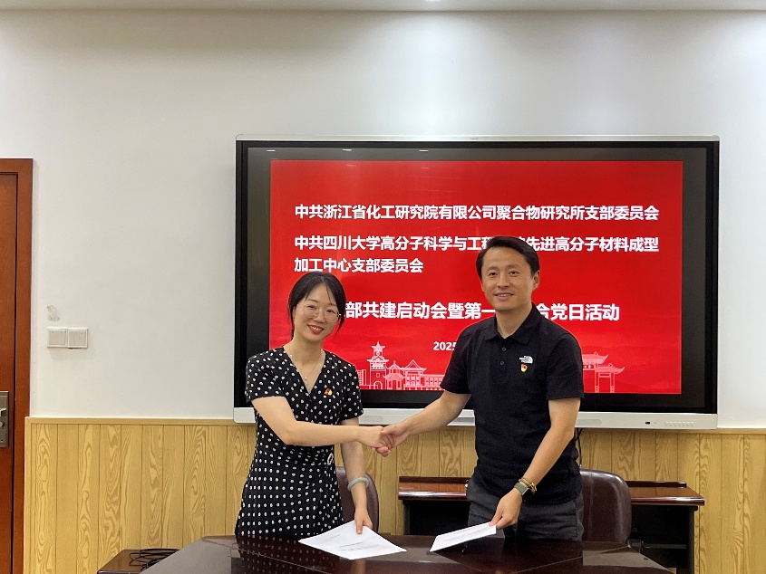 为深化党建引领,促进产学研深度融合,7月29日,高分子研究所先进高分子材料成型加工中心与浙江省化工研究院(浙化院)聚合物研究所联合开展“支部共建聚合力,校企合作促发展”支部共建启动会暨第一次联合党日活动。此次活动旨在通过支部共建,搭建交流平台,共享党建经验,共谋发展蓝图,推动双方在人才培养、科技创新与产业转化方面的深度合作。