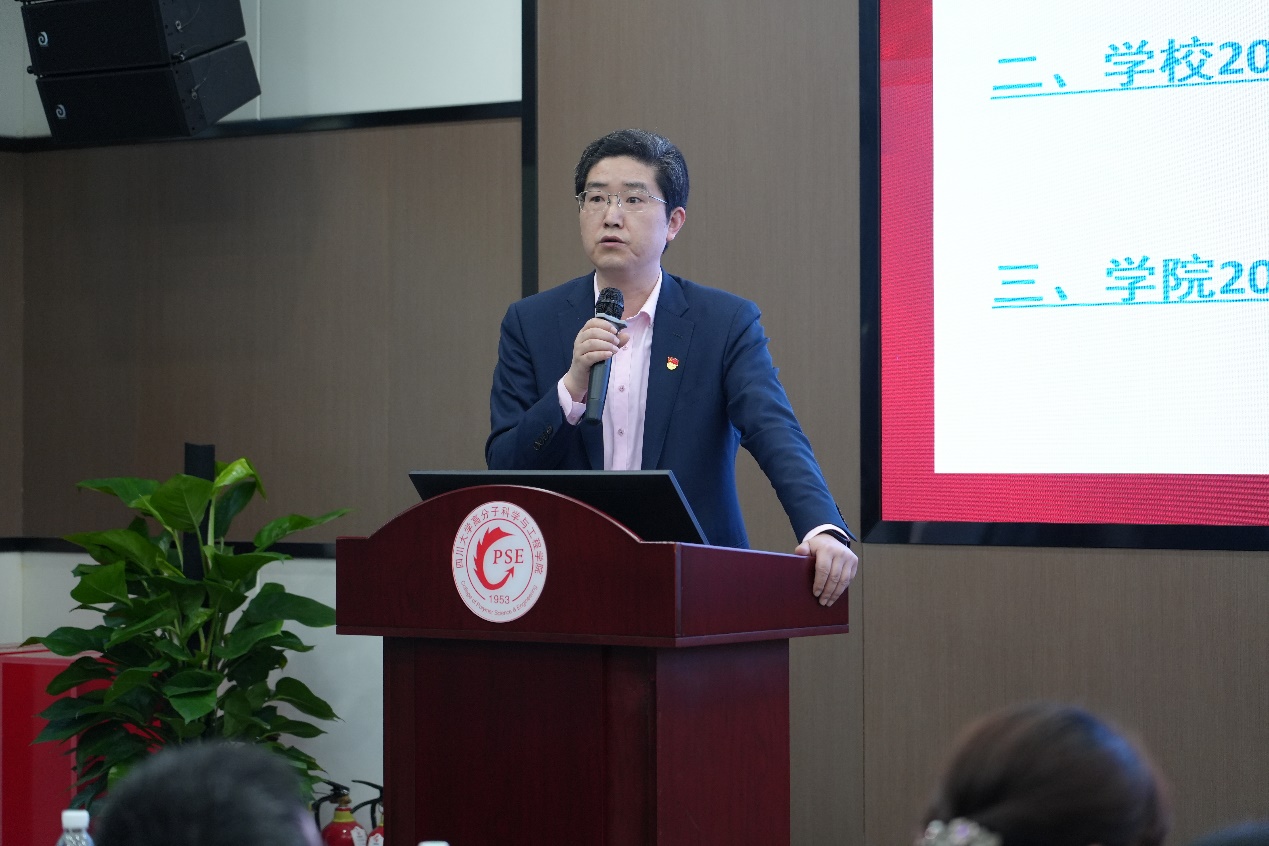 公司党委书记牟德富作总结发言。他强调,全面从严治党永远在路上,2025年是教育强国建设全面布局、高位推进之年,公司要深化政治引领,筑牢思想根基,坚持不懈用习近平新时代中国特色社会主义思想凝心聚魂;要压实责任担当,推动工作落实,确保公司和公司各项决策部署落地见效;要加强纪律建设,巩固深化党纪学习教育成果,营造风清气正教研环境;要坚持以高质量党建引领各项事业高质量发展,为加快建设世界一流高分子学科提供坚强保障。