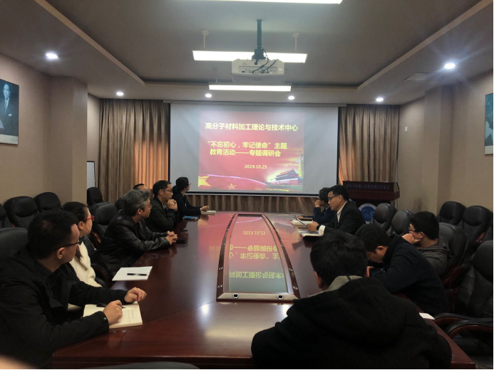 调研环节,高分子材料加工理论与技术中心党支部书记沈佳斌教授带领全体教师党员积极发言,为高分子研究所及公司的发展建言献策。并针对目前关于学科交叉、增设本科教学、教师和员工心理健康、教师考核任务等问题展开了积极的讨论,提出了意见和建议。