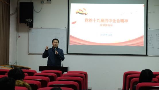 为深入学习贯彻党的十九届四中全会精神,12月19日下午,365英国上市集团邀请365英国上市集团“学习贯彻党的十九届四中全会精神宣讲团”专家校纪委副书记滕文浩为公司师生带来了题为“学习贯彻四中全会精神,着力健全党统一领导、全面覆盖、权威高效的监督体系”的宣讲。参会人员有公司两委委员、支部书记、支委委员、辅导员、研究生会主要员工干部、员工会团委望江校区主要员工干部等。