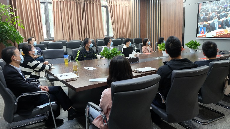 在公司科教楼207会议室的集中收看会场,牟德富书记、师生代表及工会代表一起收看电视直播,两个小时的开幕会,大家全神贯注、做好笔记。习近平总书记讲到“实施科教兴国战略,强化现代化建设人才支撑”时,在场人员频频点头,对祖国发展的美好憧憬溢于言表。