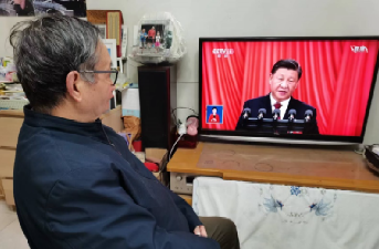 退休教师在家收看开幕会
