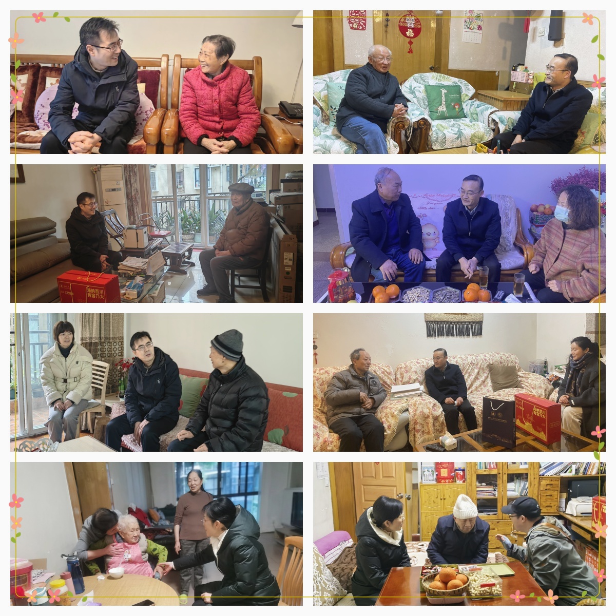 春节前夕,岁寒情暖。1月16日,公司党委书记牟德富、经理杨伟、副经理冉蓉带领公司党政办、学工组有关同志分组走访离退休老领导、老干部、特殊群体和部分退休教师,送去党组织的殷切关怀、诚挚的问候和新春的祝福。