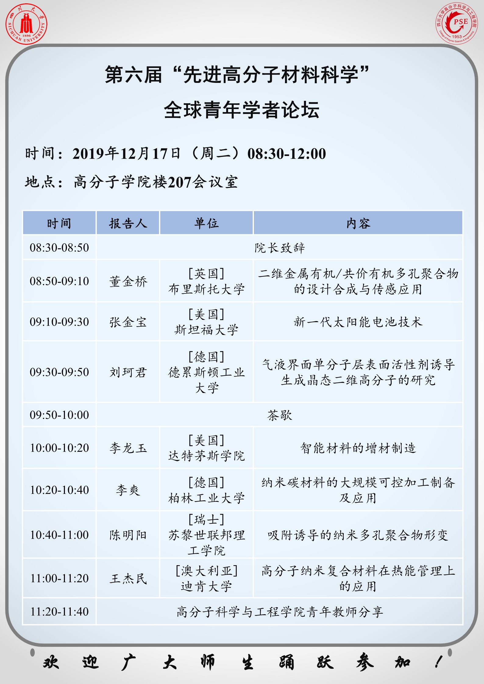 第六届“先进高分子材料科学”全球青年学者论坛
