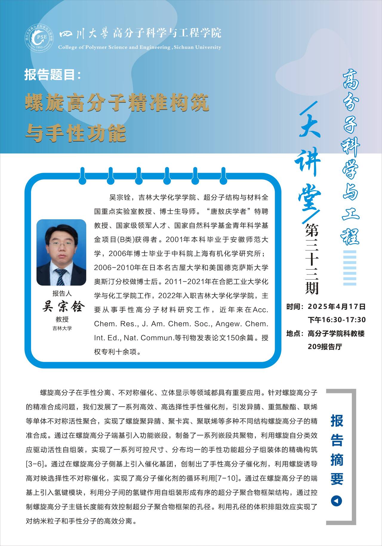 螺旋高分子精准构筑与手性功能