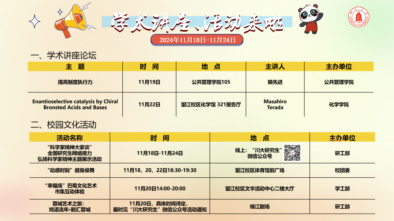 学术讲座论坛及校园文化活动预告 (2024年11月18日-11月24日)