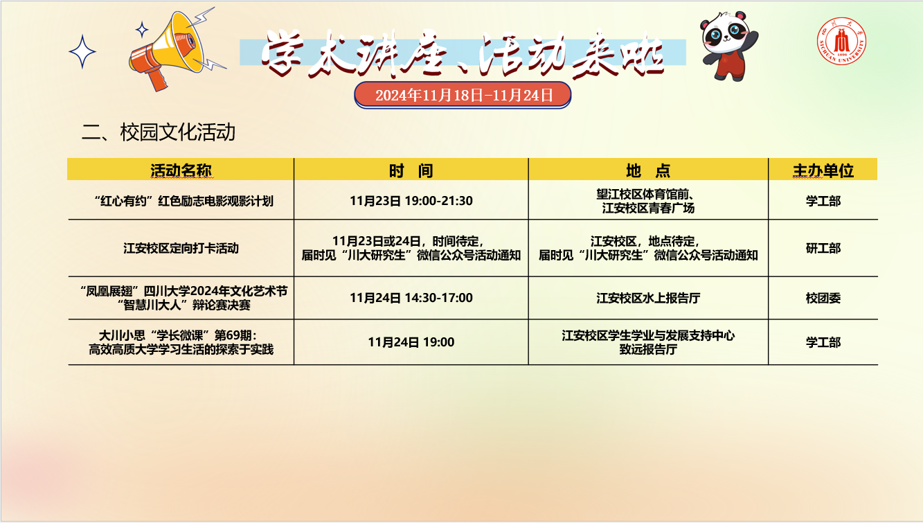 校园文化活动预告(2024年11月11日-11月17日)