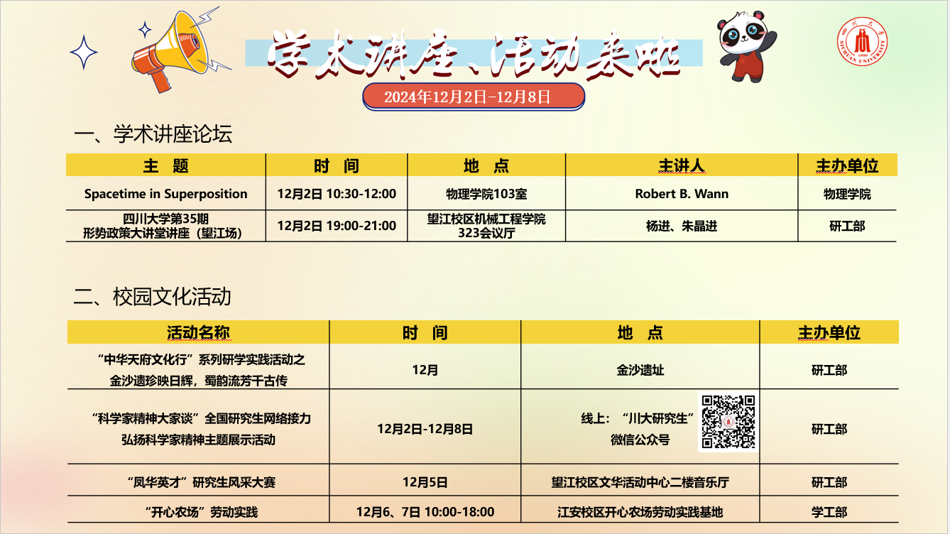 学术讲座及校园活动文化预告(12月2日-12月8日)