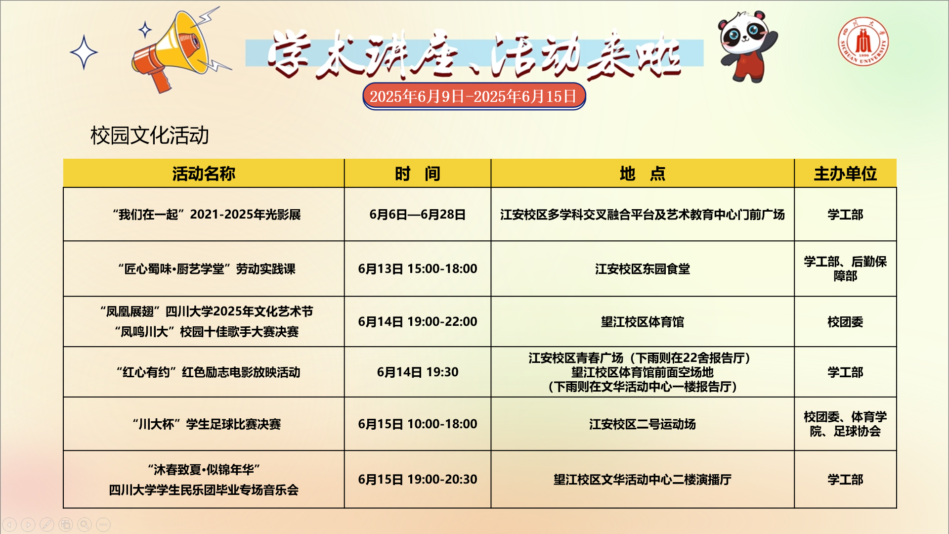 学术讲座论坛及校园文化活动预告(6月9日-6月15日)