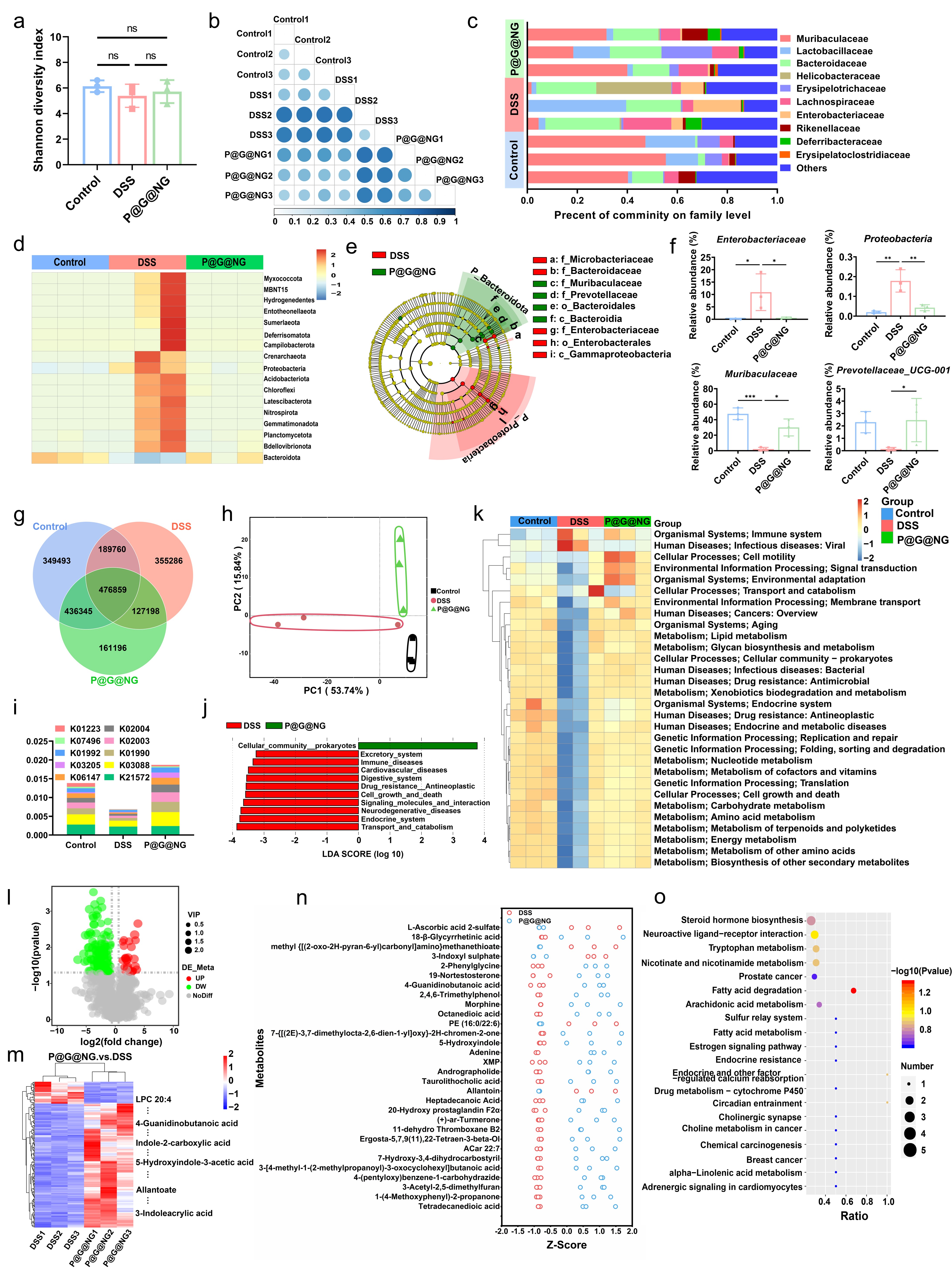 图4. NO释放对肠道菌群和代谢物结构的影响