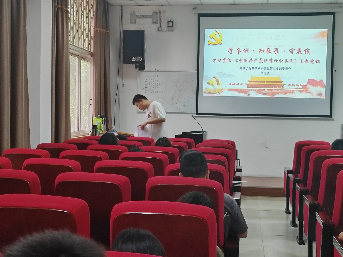 支部纪律委员桑可潇同志带领大家深刻了解了《中国共产党纪律处分条例》的重要意义,详细讲解了十八大以来《条例》的修订情况。他指出全体党员要把学习贯彻《条例》作为重要政治任务,不断提升自我的政治素养和拒腐防变能力,使廉洁自律规范内化于心,外化于行,坚定理想信念、严格遵循法律法规,切实以学纪、知纪、明纪、守纪的优良纪律作风要求自我。